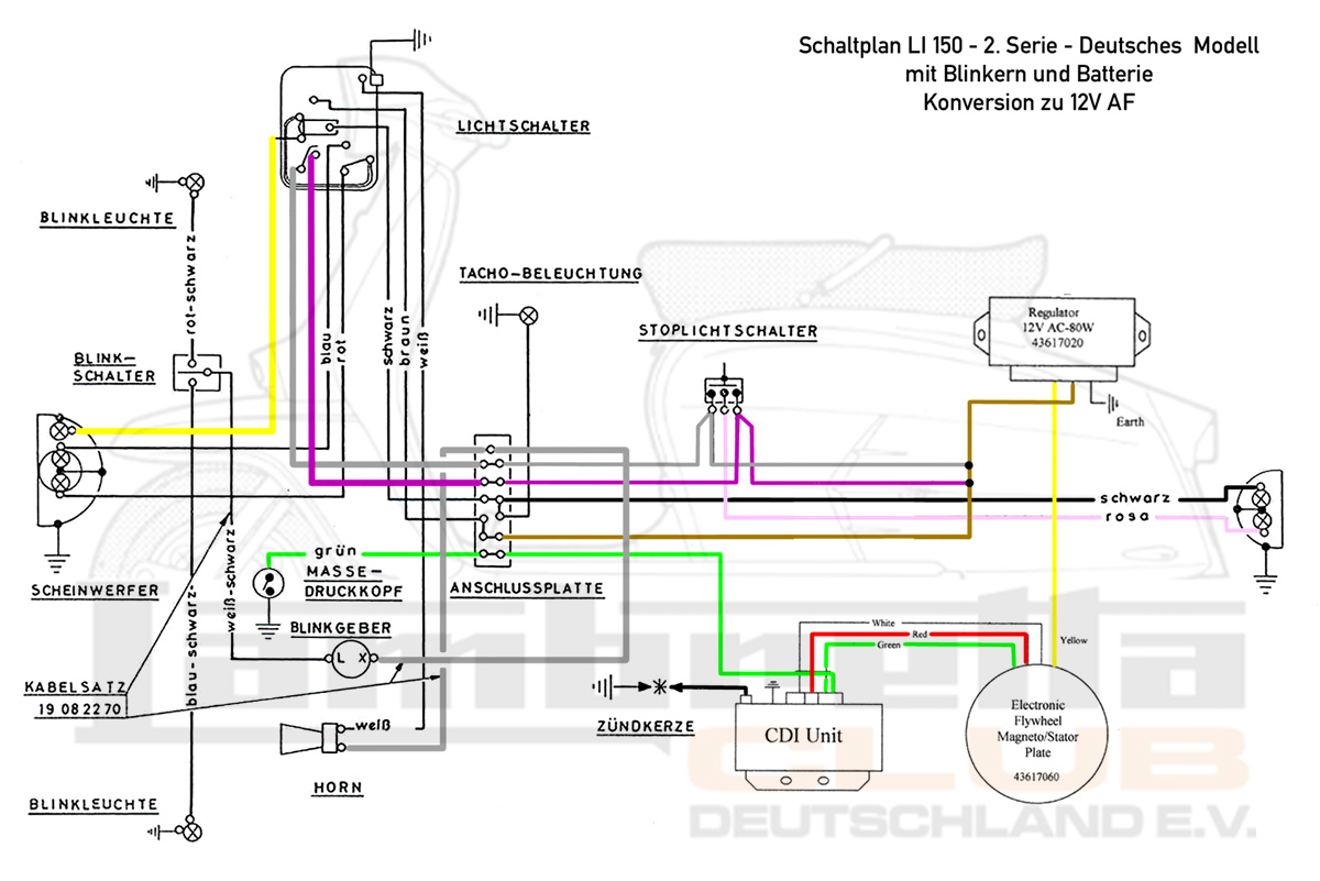 Lambretta Li Serie 2 (deutsch, von 6V mit Batterie auf 12V ohne Batterie)